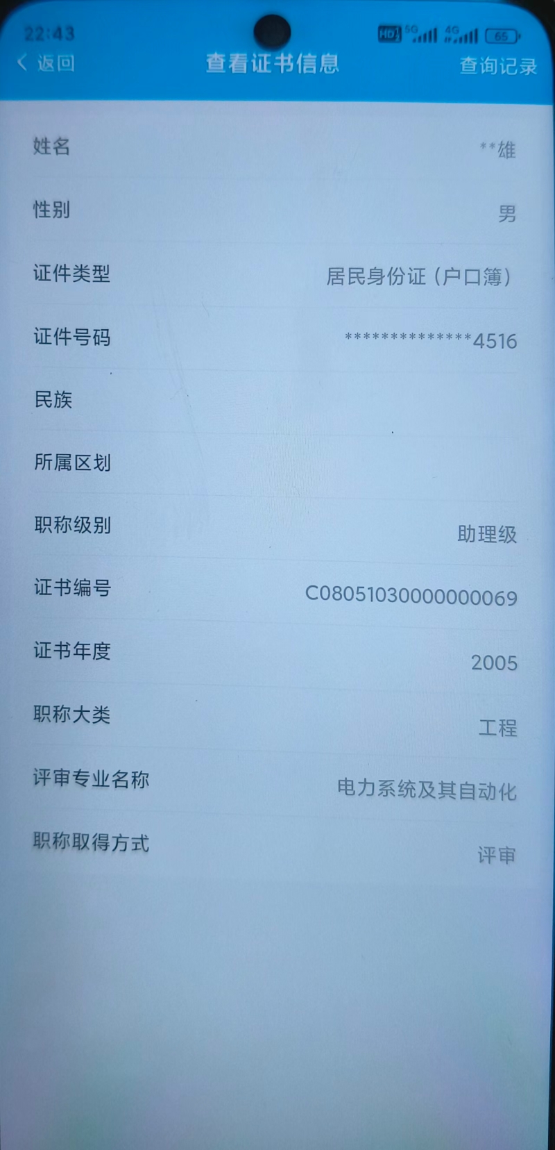 现因智慧人社app上查询不到相关信息,导致无法使用。附件里有我2005评的助理工程师能够查到信息,恳请贵单位能给予补登信息为感!
