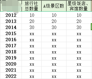 - 来信标题: ①2012-2022每年拥有的A级景区总数量;②2012-2022每年星级宾馆(酒店)数量;③2012-2022每年旅行社数