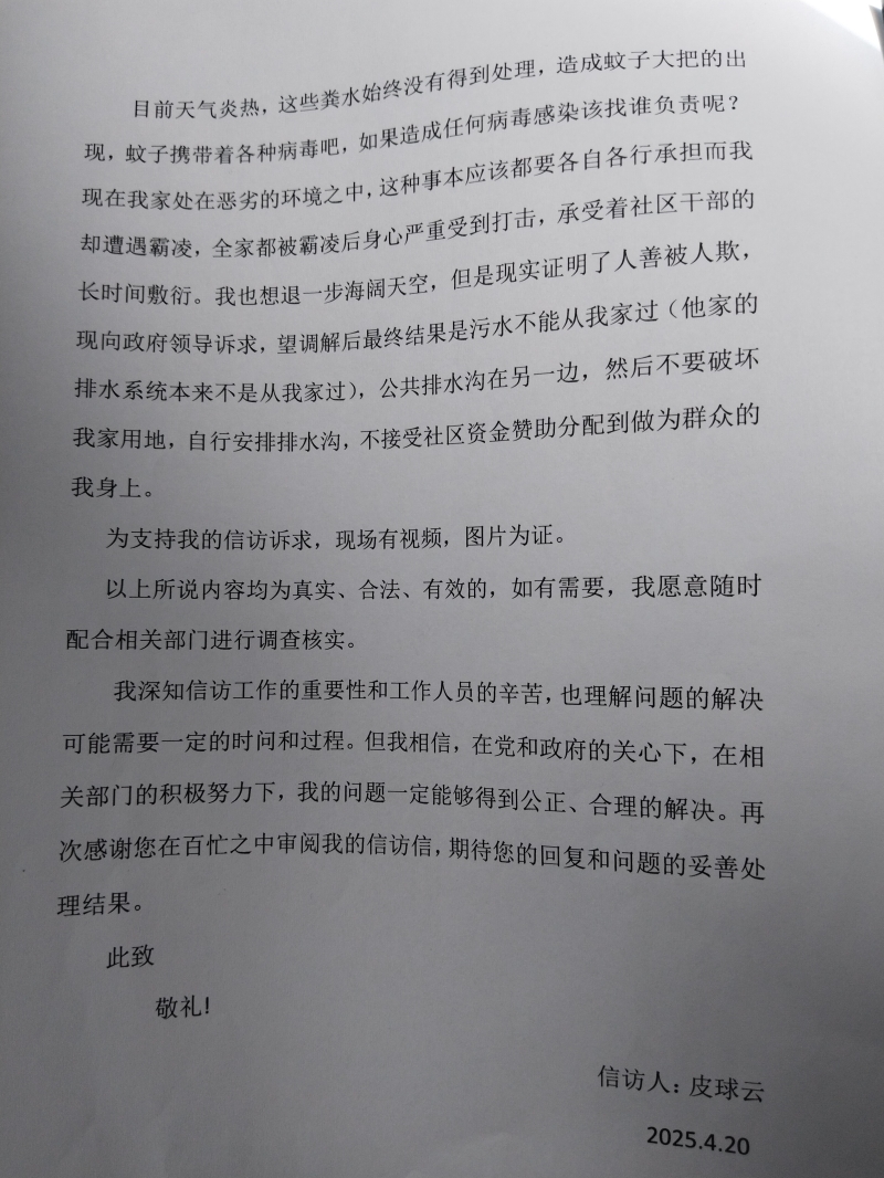 您的留言已收悉,关于您反映的关于邻居家排水沟从您家门前经过,粪水未得到处理,您家处在恶劣环境,希望邻居家污水不经过您家通过另一边的公共排水沟派出的问题。我局已转至赫山区龙光桥街道办事处办理,您可以通过拨打0737-4688288咨询办理情况。