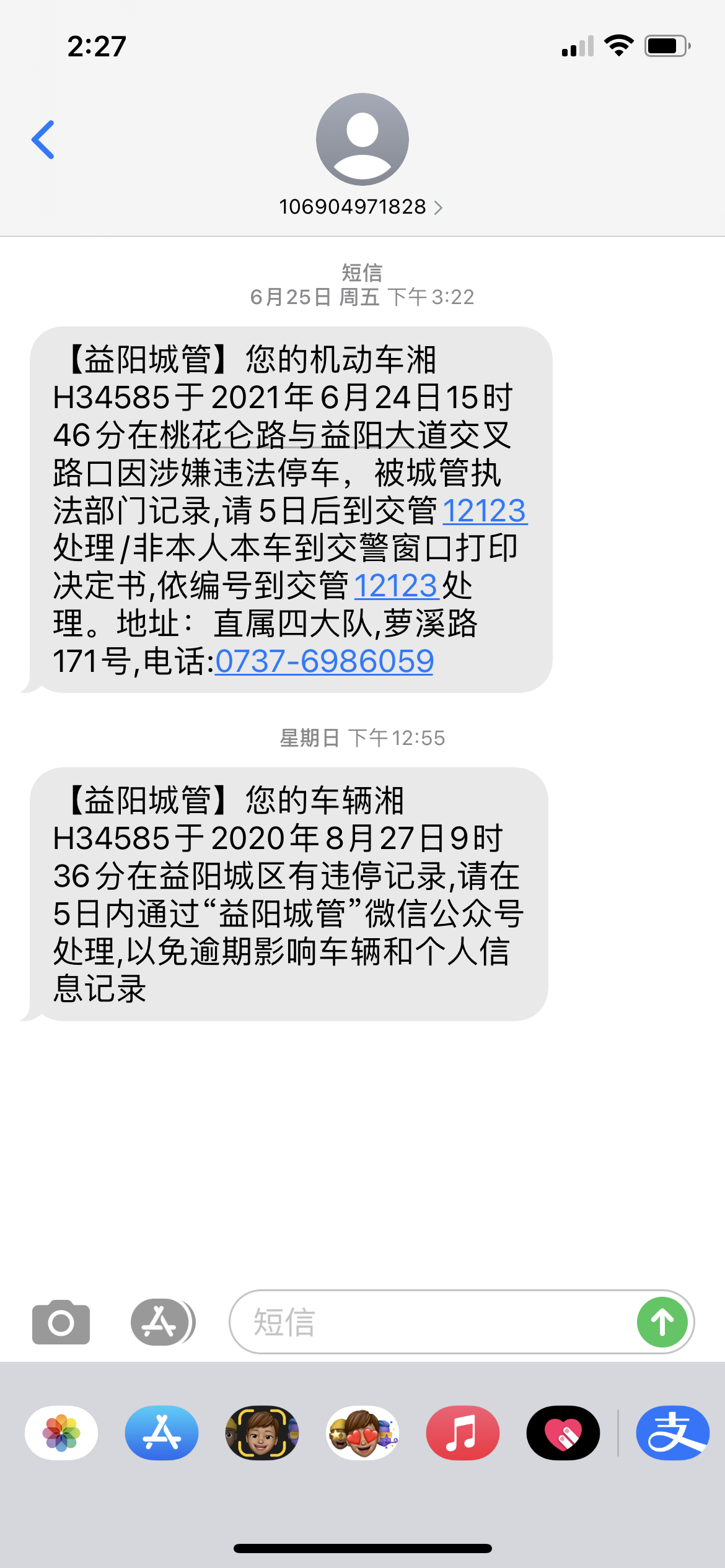 | 信件主题: | 城管10个月后给我发来车辆违停短信 | ||