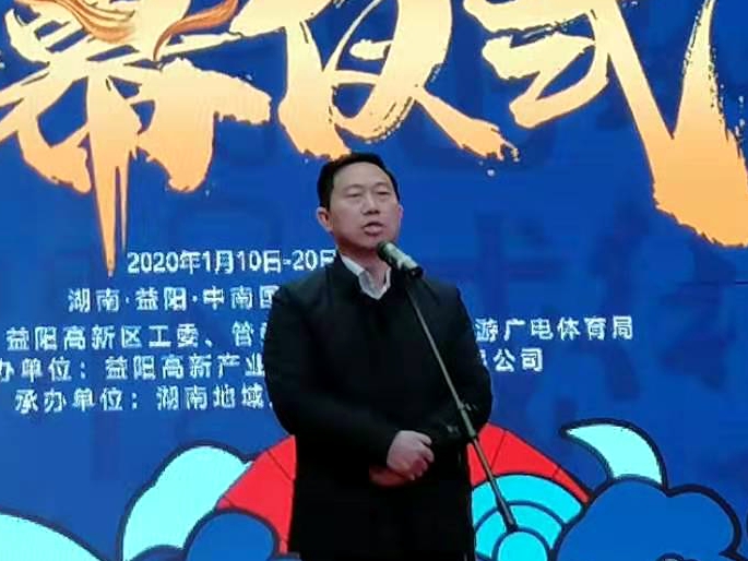 1月11日上午,益阳首届“中国年”文化旅游节暨2020“我们的节日·春节”大型“潮”级年货节在中南国际会展中心盛大开幕,益阳市文旅广体局党组副书记、副局长张金龙出席开幕式并致辞,随后带队至各展位实地考察,并与非遗传承人亲切交流。