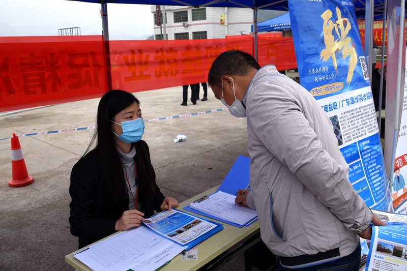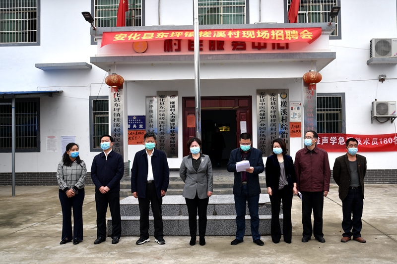 3月23日上午,一场特殊的企业招聘会在益阳市安化县东坪镇槎溪村举办。艾华、奥士康等12家用人单位与当地有就业创业意愿的村民进行现场洽谈,双方各自晒出自身条件和需求,纷纷向“心仪对象”抛出“橄榄枝”。本次活动由益阳市文旅广体局、民革益阳市委、中国银行益阳市分行、益阳市人社局、安化县人社局以及当地镇政府、村委会联合举办,旨在深入贯彻落实习近平总书记在决战决胜脱贫攻坚座谈会上的重要讲话精神,坚持一手抓疫情防控、一手抓脱贫攻坚,优先支持贫困劳动力务工就业,全力支持企业复工复产。益阳市人民政府副市长、驻槎溪村帮扶工作挂帅领导黄东红赴现场组织指导活动开展。