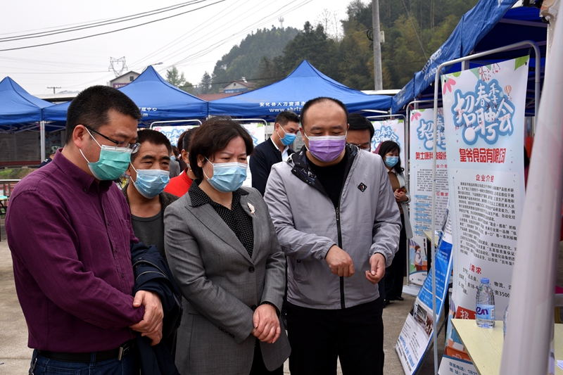 黄东红高度重视槎溪村贫困户的就业需求,前期针对疫情不利影响,组织驻村帮扶工作队深入调研相关情况,积极筹备招聘会,为村民提供贴心便捷的求职服务。在活动启动式上,黄东红强调指出,就业是民生之本、安国之策、和谐之基,就业扶贫是脱贫攻坚的重要组成部分,通过本次招聘会必将极大地促进当地贫困劳动力、富余劳动力转移就业,提升扶贫成效。黄东红勉励相关部门积极为用人单位和应聘人员牵线搭桥,加强跟踪服务保障;各用人单位做好拴心留人工作,广大求职者努力在本职岗位上实现人生价值。