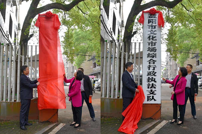 3月25日上午,益阳市文化市场综合行政执法支队正式挂牌成立。中共益阳市委宣传部副部长方笑霓和益阳市文旅广体局党组书记、局长胡光华共同为支队揭牌。市文旅广体局党组副书记、副局长周红宣布支队班子成员,局党组成员、副局长陈腊春主持揭牌仪式。局机关科室负责人、执法支队全体干职工参加揭牌仪式。