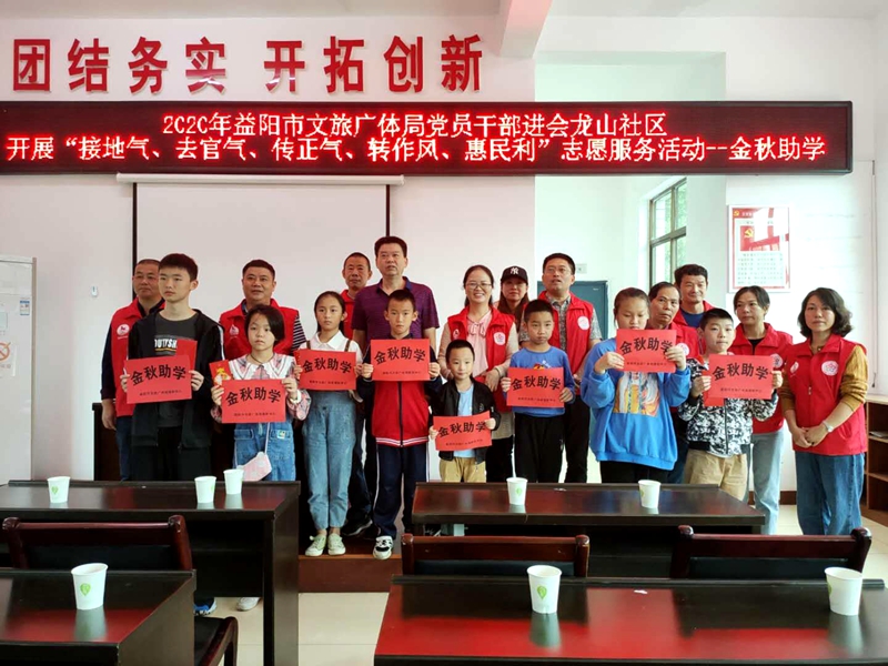 9月19日,市文旅广体局总工程师汤光泉带市电影文化传媒有限公司、市摄影艺术中心党员干部来到会龙山社区开展“接地气、去官气、传正气、转作风、惠民利”志愿服务活动一一金秋助学。