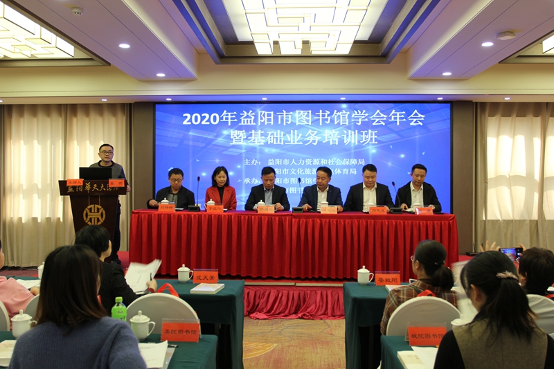 10月22日-23日,由市人力资源和社会保障局、市文旅广体局主办,市图书馆学会、市图书馆承办的“2020年益阳市图书馆学会年会暨基础业务培训班”在华天大酒店召开。市社科联党组书记郭勇干,副主席阳志成,市文旅广体局党组成员、副局长徐志成,湖南城市学院图书馆副馆长于应华等领导出席开班仪式。来自全市各高校图书馆、各区县(市)公共图书馆代表等60多人参加年会及业务培训。