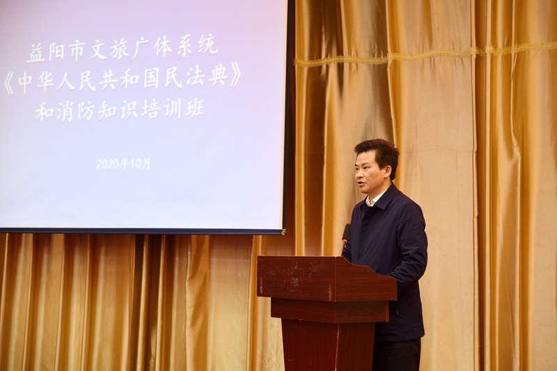 10月28日,市文旅广体局组织系统全体干职工参加《中华人民共和国民法典》和消防知识培训,市委宣传部副部长、市文旅广体局党组书记、局长陶汉文出席培训会,特邀市委党校副校长周铁涛、省普消消防咨询服务中心培训主任陈富沅进行专题授课,局党组副书记、副局长张金龙主持培训会。