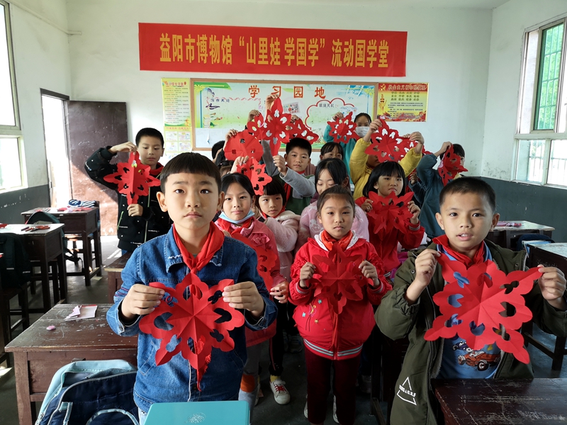 11月12日,赫山区泥江口镇蛇山小学的同学们迎来了一场别开生面的“体验课”,益阳市博物馆文化志愿者将国学课堂搬到了该校五年级的教室,为孩子们带来了国宝探秘、益阳非遗等课程。