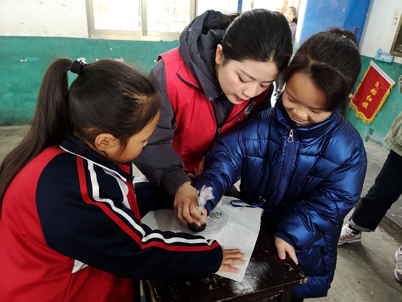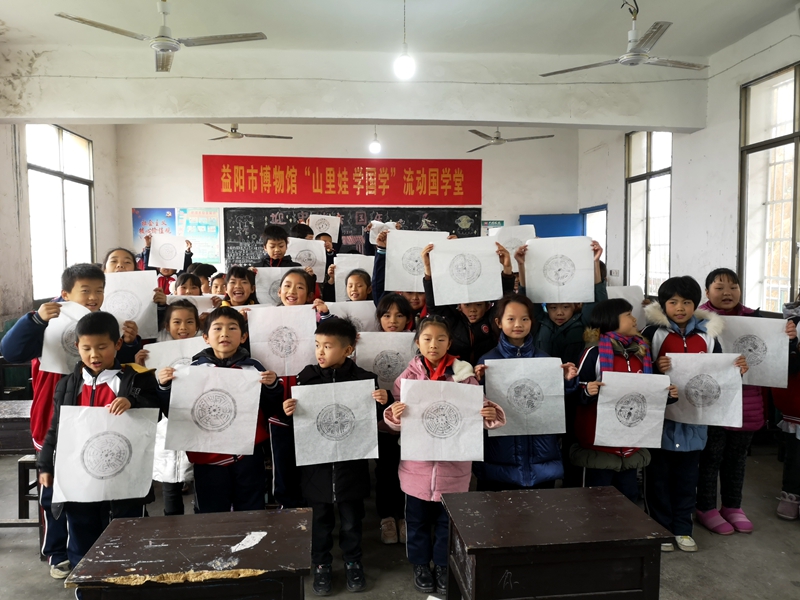 12月10上午,益阳市博物馆组织志愿者来到牌口乡红旗小学,为该校四年级的学生带来了文物知识课程和瓦当拓印手工活动,受到了同学们的热烈欢迎。