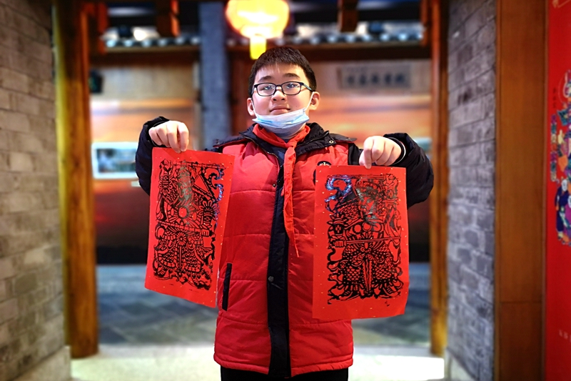 讲座结束后,博物馆为同学们提供了富有年味的手工体验活动——门神雕版印刷。在讲解完操作流程后,同学们迫不及待地动起手来,磨墨、涂墨、刷印、晾干.....孩子们认真地进行着每一道工序,纷纷亮出自己的作品。