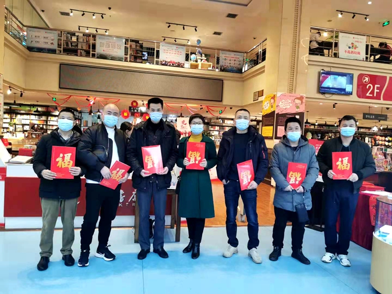 无联不成春,有联春更浓。湖南省总工会组织这次活动结合疫情防控新形势,一改以往书法家义务书写春联现场赠送的习惯,而是通过事先写好春联,然后集中各单位在益阳书城进行现场认领的形式,组织各单位积极开展春联的领取工作。活动中,省总工会将印刷“福”字和春联共三万多份免费赠送给广大职工,职工可凭工会会员证或会员身份识别码到益阳书城领取。