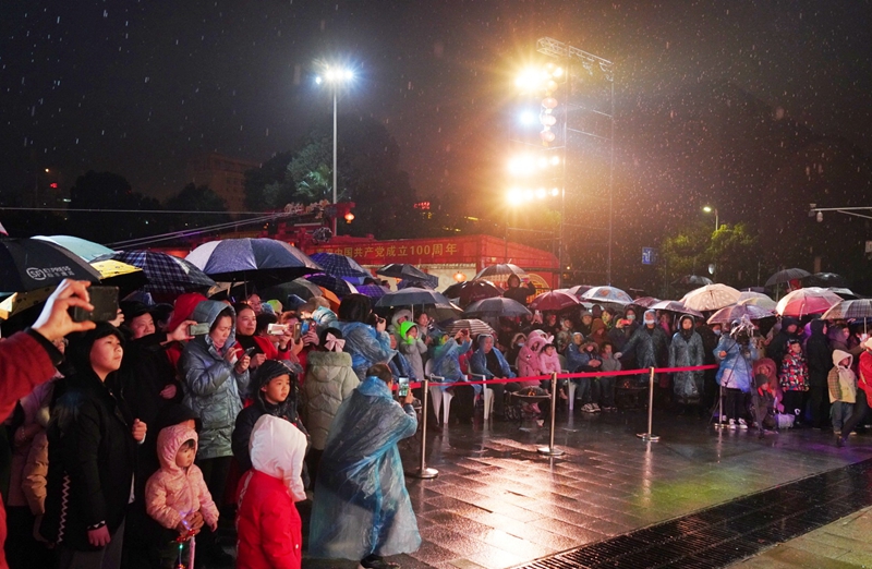 2月26日是正月十五传统元宵佳节。入夜后的益阳大剧院前门广场川流不息、人潮涌动,到处都是流光璀璨、火树银花。尽管一直下着蒙蒙细雨,但丝毫未影响到现场观众期待参与“闹元宵”、观看表演的热情,他们早早“占据”有利地形,克服不良天气的影响,在风雨中坚守着,等待我们的中国梦 文化进万家——闹元宵广场文化活动的开演。