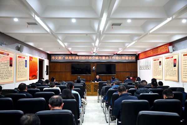 为深入贯彻全市宣传思想文化工作会议和文化旅游广电体育工作会议精神,确保各项工作有序高效开展,顺利完成全年目标任务,3月9日,益阳市文旅广体局召开2021年度目标任务分解与重点工作细化部署会议,市委宣传部副部长、市文旅广体局党组书记、局长陶汉文出席会议并讲话,局党组副书记、副局长周红主持会议,局班子成员、副处级以上干部、科室和局属单位主要负责人参加会议。