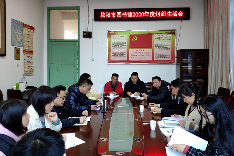 3月11日,益阳市图书馆党支部召开2020年度组织生活会,市文旅广体局党组成员、副局长徐志成,人事科到会指导。