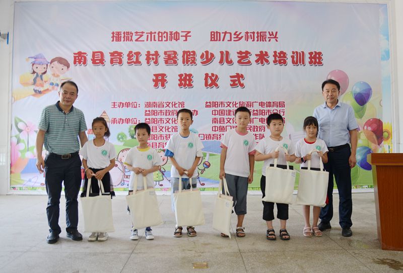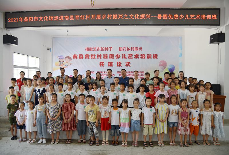 本次活动由省文化馆、市文旅广体局、市政府金融办、建行益阳分行主办,市文化馆、南县文旅广体局、南县文化馆、中鱼口镇人民政府、市驻育红村帮扶工作队、育红村村委会、育红村完小承办,旨在进一步丰富当地孩子们的暑假生活,促进公共文化服务均等化,助力乡村振兴。市文旅广体局党组成员、副局长徐志成,省文化馆活动部主任姚倩等领导出席启动式。