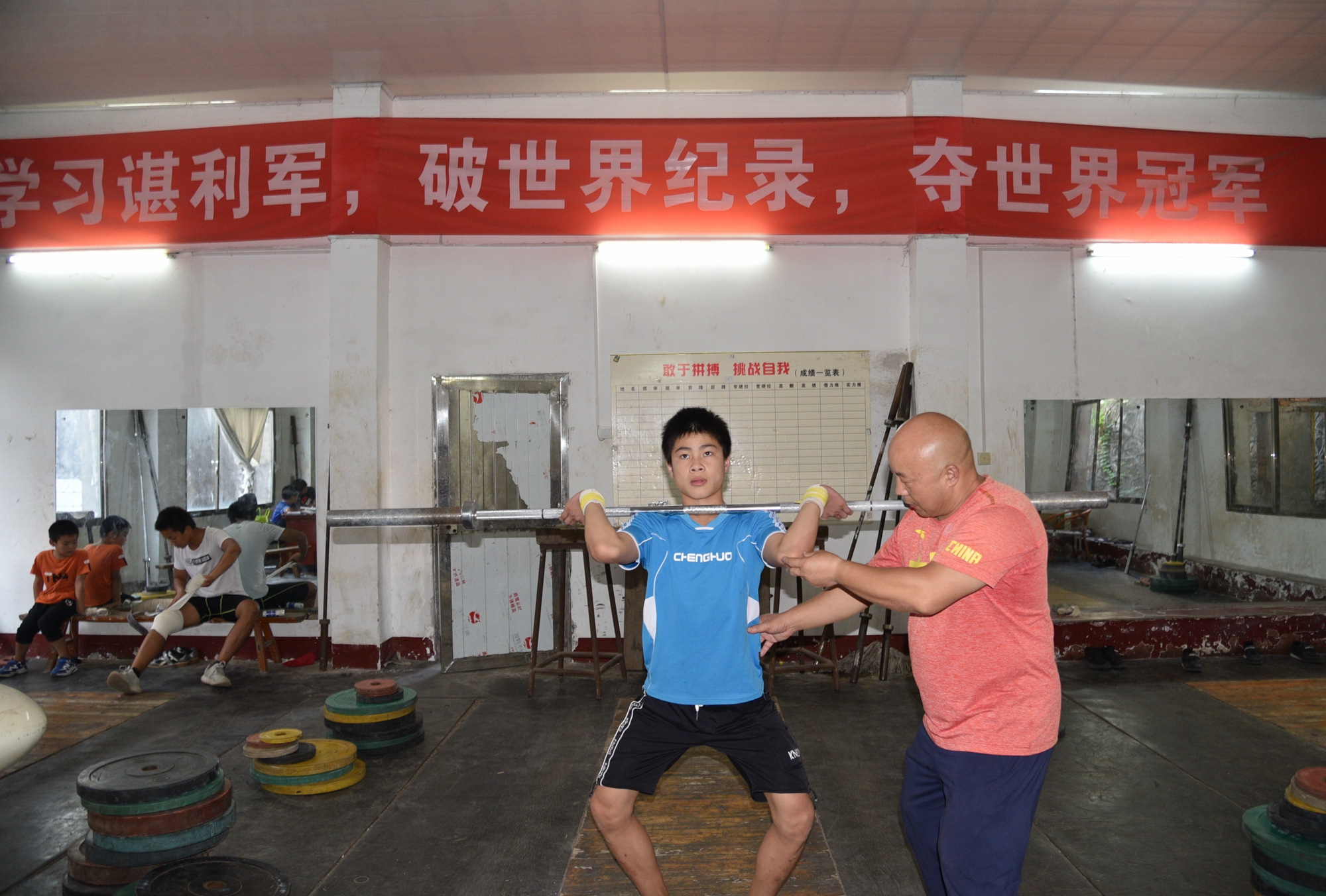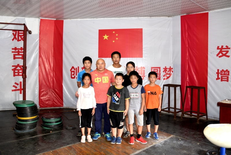 蒋益龙与益阳市少儿体校举重小运动员在一起