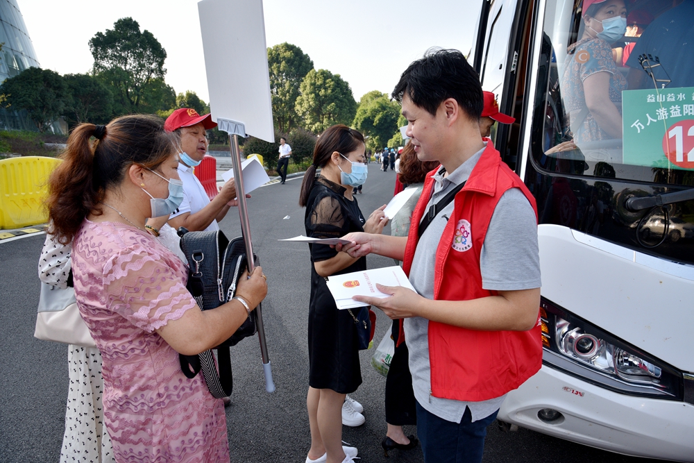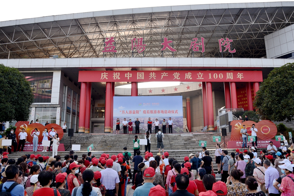 9月10日上午,“万人游益阳”疫后旅游市场启动仪式在益阳大剧院前坪举行。益阳市人民政府副秘书长王国保出席仪式并宣布启动,市委宣传部副部长、市文旅广体局党组书记、局长陶汉文作动员讲话。活动旨在为疫后益阳旅游市场复工复产按下“启动键”,进一步提振全市文旅消费信心,激发文旅市场潜力,引爆中秋小长假、国庆黄金周益阳旅游市场。