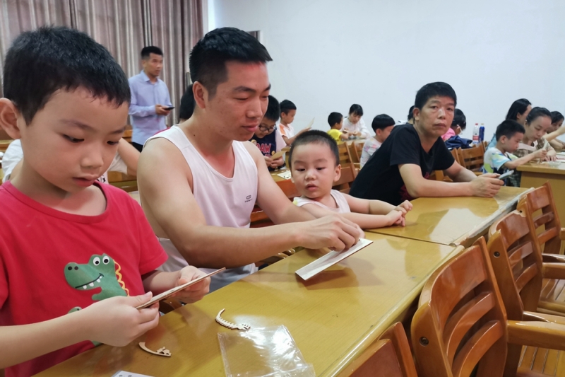 25日下午,开展《恐龙来啦!AR体验》科普公益讲座。让大家对恐龙特征、主要分类、化石研究、灭绝原因有了初步了解。家长们用手机下载了AR互动App,对准海报中的恐龙图片进行点击扫描,就可以获取到恐龙3D模型及相关百科知识,还可以与恐龙3D模型互动拍照,在娱乐中了解相关知识。最后,亲子家庭通过合作组装属于自己的3D恐龙模型。