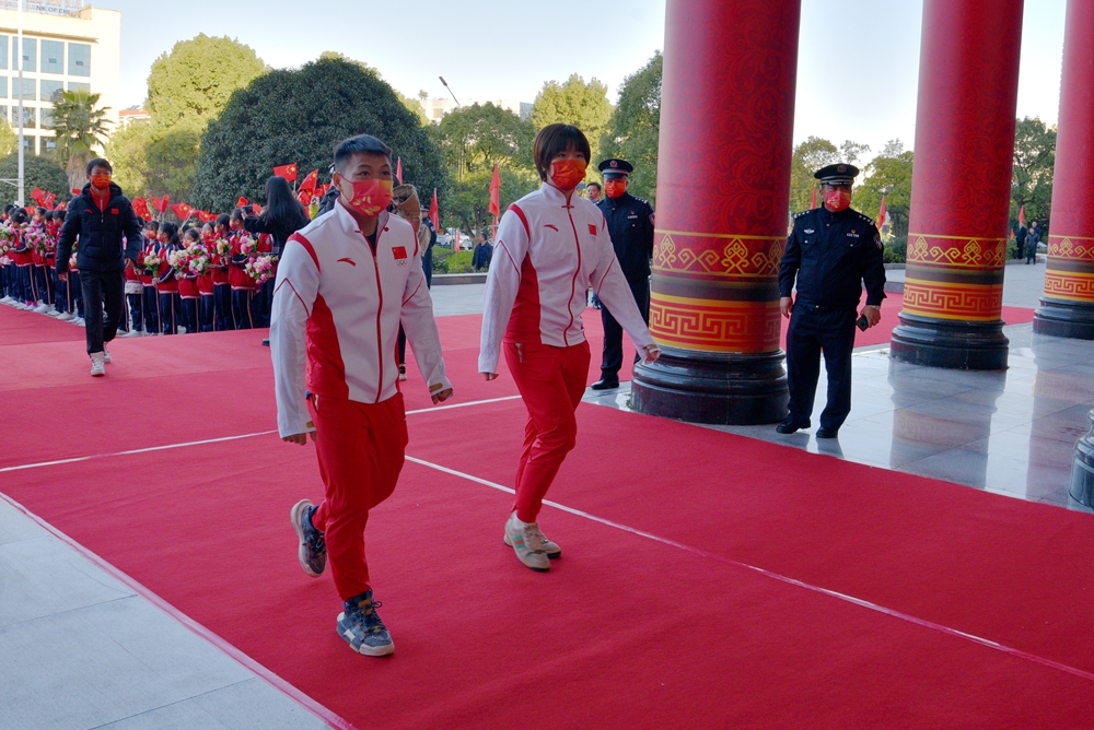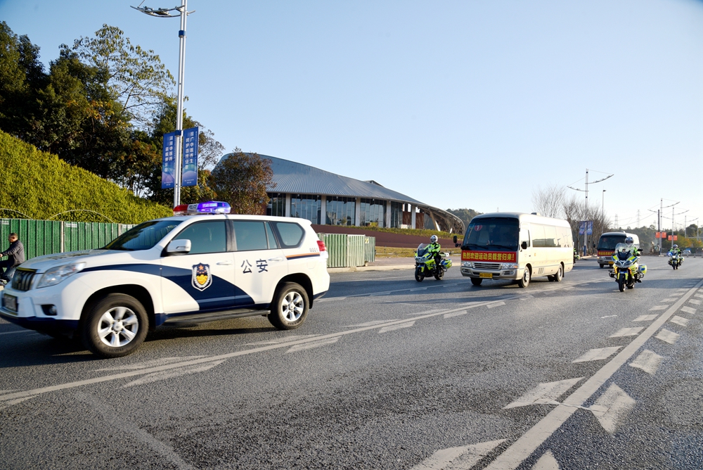 上午8时许,在护卫队的护卫下,大会受表彰对象谌利军、贾一凡、刘亭、晏亚平、蒋益龙、吴志军、李琼、周瑛、王班平等(文晓燕因所就读学校疫情防控要求未能参加大会)以及益阳市历届奥运(世界)冠军代表龚智超、田卿、龚睿那、黄穗乘车从下榻酒店出发,沿途受到市民群众的热烈欢迎。