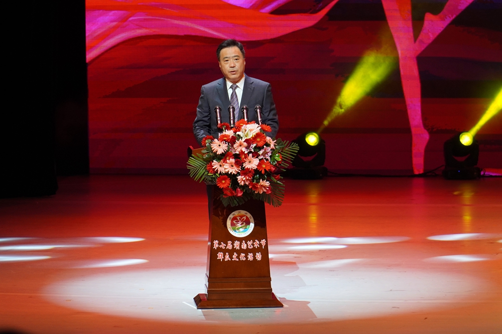 尚斌在讲话中指出,近年来,全省群文工作者紧贴生活、紧贴人民,新创了一大批主题突出、群众喜闻乐见,兼具时代特色的优秀群众文艺作品,有力提升了人民群众的文化获得感和幸福感。尚斌勉励广大群文工作者以本届艺术节为契机,深入学习领会习近平总书记重要讲话精神,用更多彰显湖南特色的优秀作品满足人民群众对美好生活的新期待,为全面建设富强民主文明和谐美丽的社会主义现代化新湖南贡献文旅人的力量。