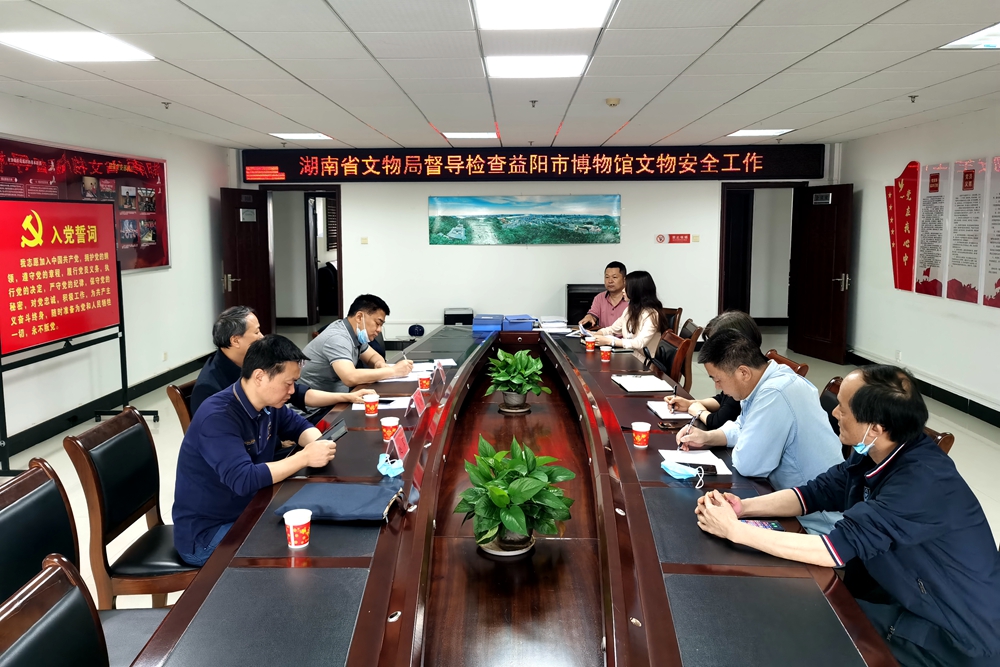 5月18日,省文物局督察处处长刘劲一行来到益阳市博物馆督查文物安防工作实施情况。