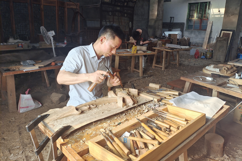 “能从一个农村木匠成长为非遗代表性传承人并获得五一劳动奖章,我非常感恩,感恩各级政府部门对我的大力支持,感恩全社会对我的关注关心,我一定会坚持初心不改,努力把洞庭木雕这个技艺保护利用好,让这个老手艺永远传承下去......”。日前,由市文旅广体工会推荐被益阳市总工会授予2022年“益阳工匠”(益阳市五一劳动奖章)荣誉的王庆云如是说。王庆云是湖南省非物质文化遗产洞庭木雕的市级代表性传承人,多年来一直坚持保护和传承传统手工艺,造福家乡,回馈社会,助力扶贫帮困和乡村振兴。
