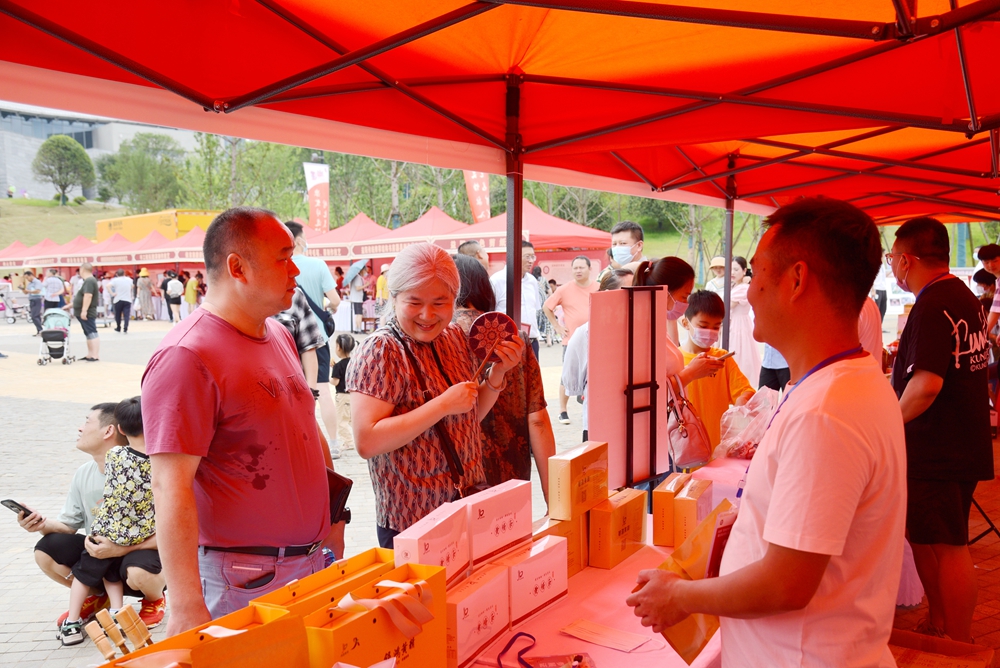 展购现场,全市35个各级非遗代表性项目一字排开,精美灵巧的小郁竹艺、生动传神的梅山剪纸、翠绿醇香的安化松针茶、松软可口的谭记发饼、香辣劲道的南洲王麻辣肉......让人目不暇接,物美价廉的“老字号”“乡村土特产”备受消费者青睐。活动让群众在购物体验中共同参与非遗保护、共享非遗保护成果,同时也有助于非遗传承人、非遗工坊增加收益。