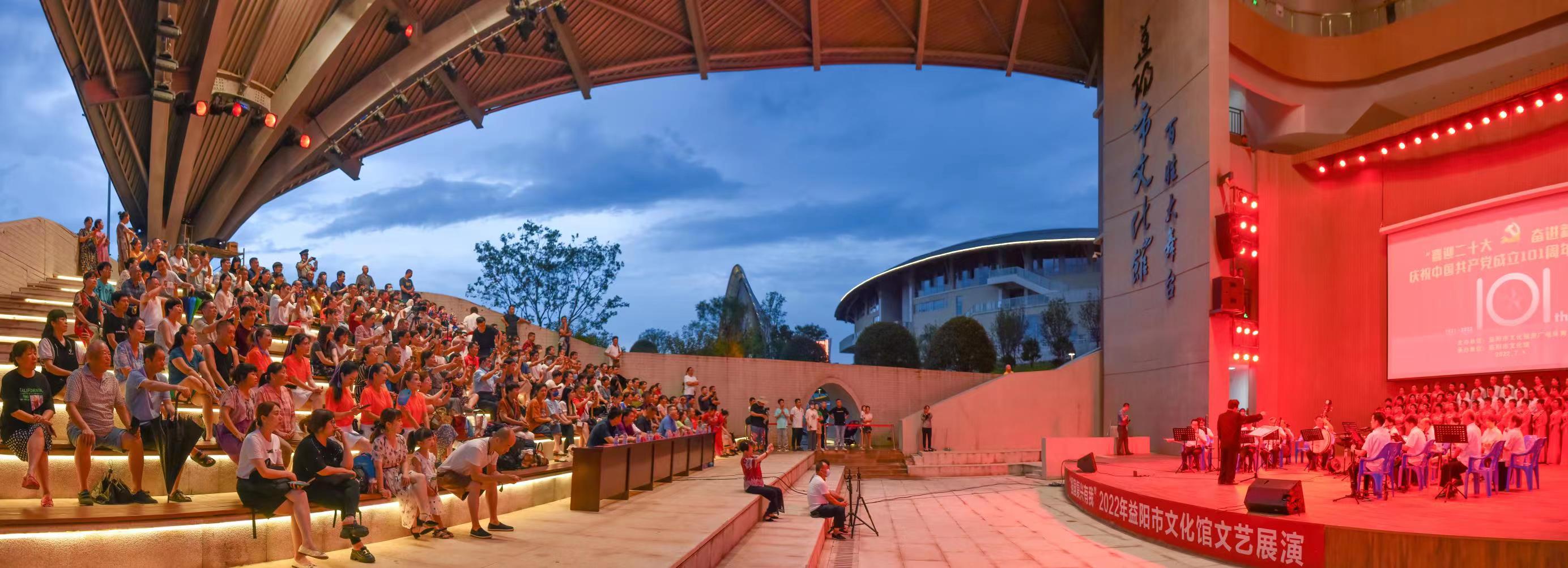 7月1日晚,益阳市文化馆百姓大舞台歌声嘹亮、舞蹈翩翩。由益阳市文旅广体局主办、益阳市文化馆承办的“喜迎二十大 奋进新征程”庆祝中国共产党成立101周年文艺晚会在这里精彩上演,市文旅广体局班子成员徐志成、曾学论、陈腊春、汤光泉、张宇与现场观众共同观看晚会。