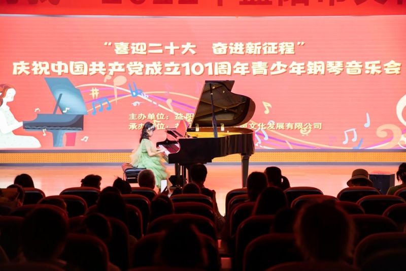 8月7日,由益阳市文化馆主办,益阳市雅典耀留声文化发展有限公司承办的“喜迎二十大 奋进新征程”庆祝中国共产党成立101周年青少年钢琴音乐会在市文化馆精彩上演。音乐会的主角是20多名钢琴少年,他们以优美动听的琴声赞美祖国、讴歌党的丰功伟绩,用饱满的热情奏响了一曲曲赞歌。