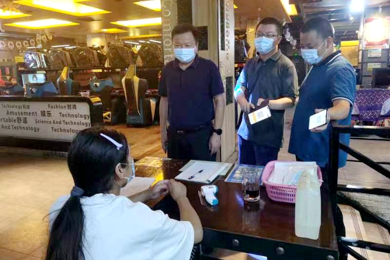 卜永强一行先后督查了外星人台球俱乐部、酷奇网咖等场所,重点检查各场所“场所码”扫码验码、测量体温、佩戴口罩、保持“一米线”等各项疫情防控措施落实情况。督查人员还检查了各场所的应急疏散标志、消防通道、消防设施、安全生产责任落实情况等。