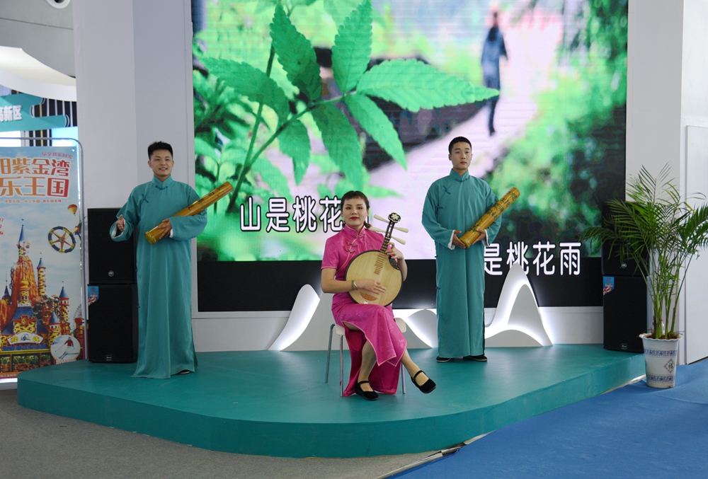益阳市在本届旅博会上设置360平方米的主题形象展区,展示安化黑茶、青松玉翠皮蛋、张家塞甜酒、天意木国木雕、南洲王食品、羞山官厅面、億昌麻香糕、大通湖蟹等各类特色旅游商品、文创产品、非遗项目共22类,发放宣传资料1.5万余份。穿插进行的益阳弹词、桃江歌舞、古筝茶艺、蟹道表演、擂茶表演等节目极具地域文化特色,掀起一波又一波的参观热潮,与会嘉宾及游客纷纷前来益阳展区采购文旅商品,了解文旅产业发展成果,洽谈文旅合作项目,展区人气持续火爆。