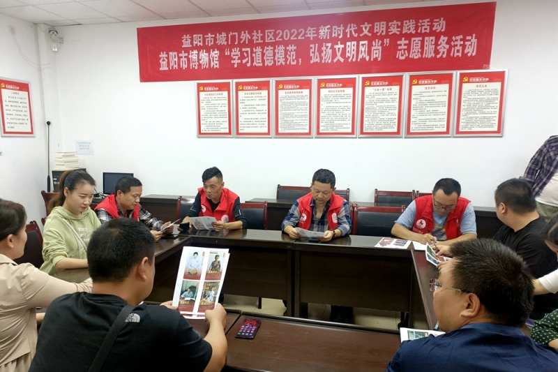 为积极弘扬社会主义核心价值观,进一步宣传道德模范先进事迹,9月23日,益阳市博物馆党支部、益阳市文化旅游产业发展服务中心党支部组织党员干部赴资阳区城门外社区开展“学习道德模范 弘扬文明风尚”志愿服务活动,扎实推进道德模范宣传进社区。