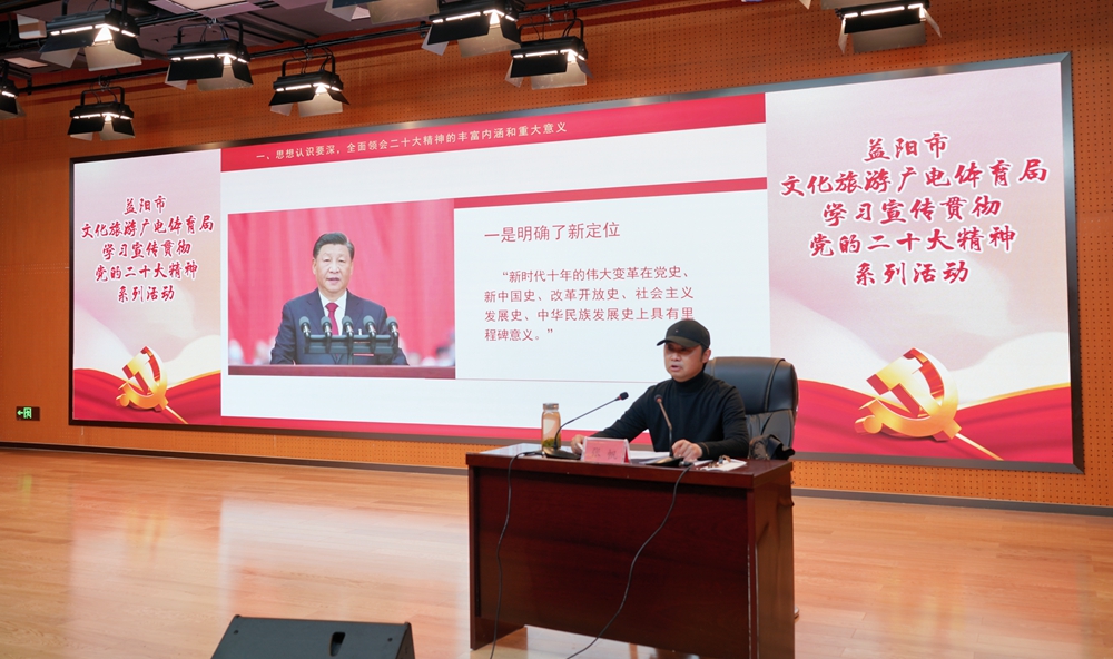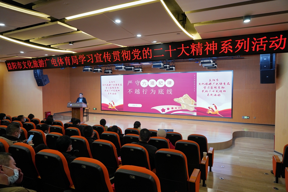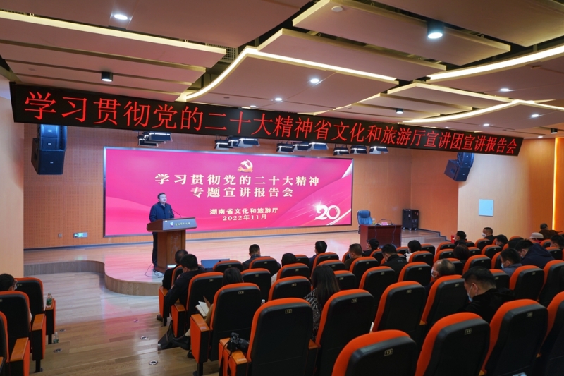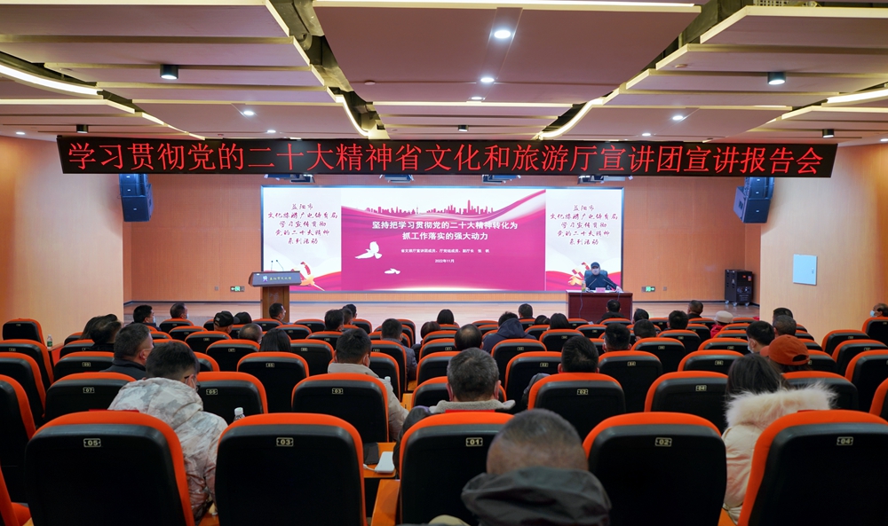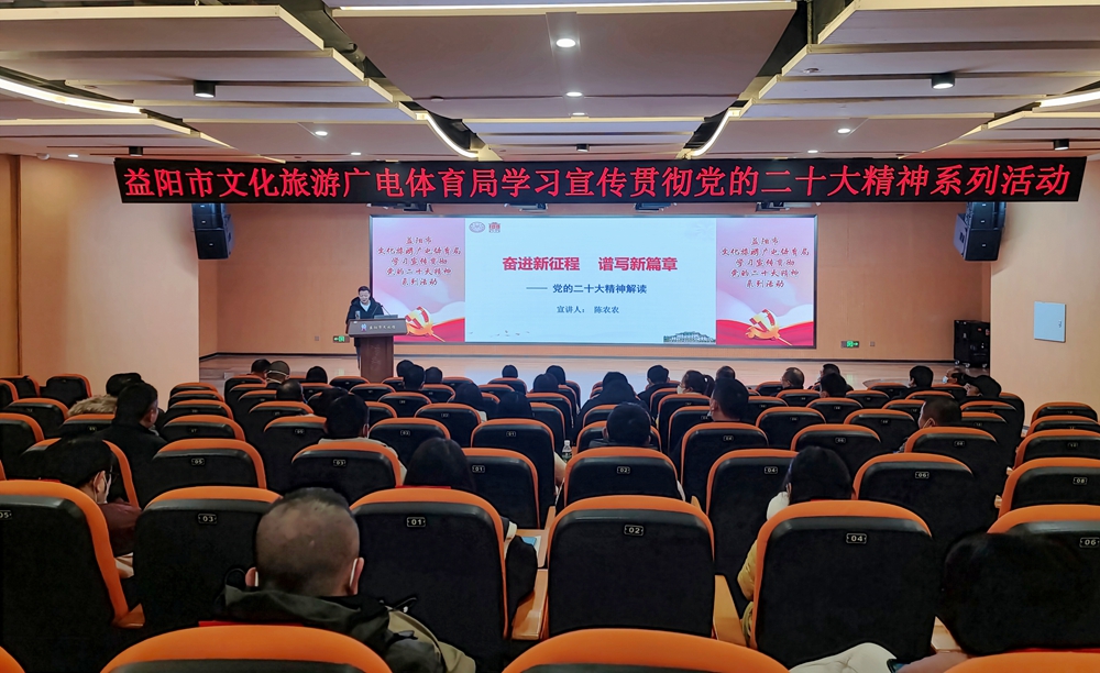 为深入学习宣传贯彻习近平新时代中国特色社会主义思想和党的二十大精神,进一步推动全市文旅广体事业产业高质量发展,11月30日至12月1日,益阳市文旅广体局组织开展学习宣传贯彻党的二十大精神系列活动。省文旅厅宣讲团成员、党组成员、副厅长张帆,艺术处处长向才平,执法监督处处长汪光富,艺术处副处长叶建武出席活动,局党组书记、局长卜永强主持宣讲报告会,系统全体干职工参加相关活动。