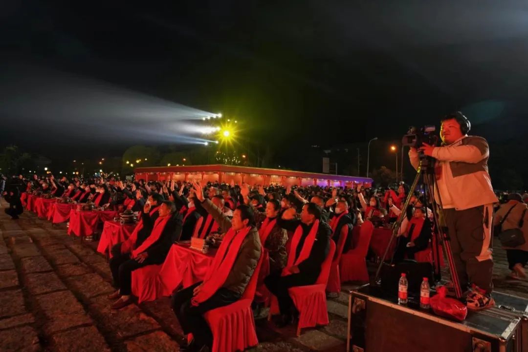 17日晚的清溪村人山人海,热闹非凡。主办方还特意添设了围炉煮茶,为这寒冬增添几分暖意。晚会在大型歌舞《神州花鼓》欢快的气氛中拉开序幕。