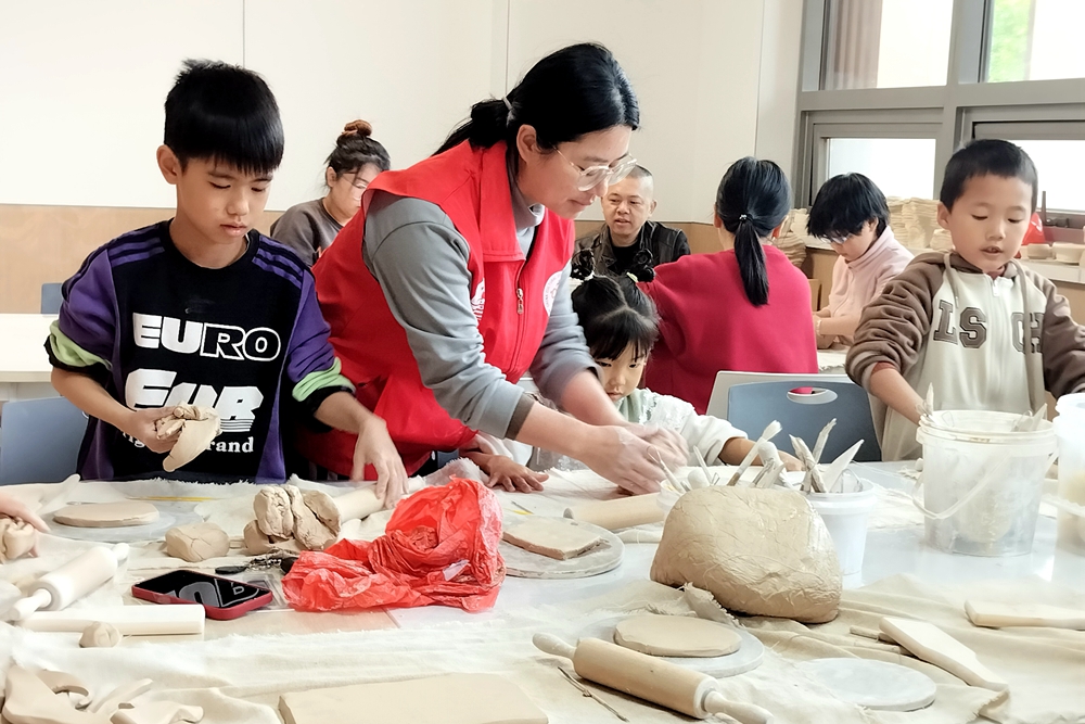 陶艺课上,老师用通俗易懂的方式为大家讲解演示陶艺制作流程。孩子们与家长相互协作,尝试制作生活中常见的器物。看着一件件自己制作的陶艺作品,每位爱好者都体会到了劳动的快乐和制陶乐趣。陶泥经过高温烤制将变成陶艺制品,几天后,陶艺老师就可以把成品带给大家。