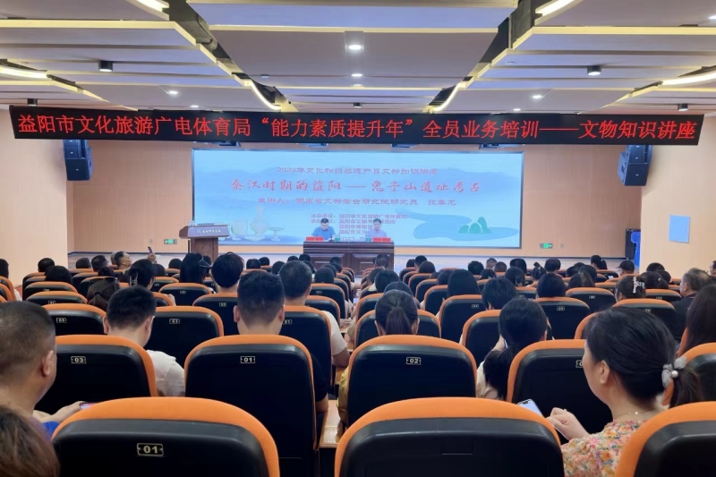 在市文化馆,以“秦汉时期的益阳——兔子山遗址考古”为主题,省文物考古研究院专家张春龙老师为全市文化文物工作者和市民群众带来了一场穿越历史、跨越古今的文化盛宴。围绕兔子山遗址发现与秦汉时期益阳历史、兔子山遗址简牍研究成果等,张老师旁征博引,如数家珍,娓娓道来。他呼吁文化文物工作者及广大市民群众热爱辉煌灿烂的中华文明,积极传承弘扬中华优秀传统文化,为文化强国、文化强省建设不断作出新的贡献。现场座无虚席,互动热烈,精彩的授课不时赢得听众阵阵掌声。