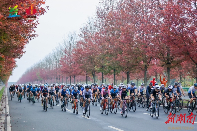 作为益阳市文旅融合发展大会系列活动,赛事的起终点均设在益阳市文旅地标之一的天意木国,赛道设置在毗邻鱼形湖畔的“网红”打卡圣地红枫大道上,800余位车手就在金秋红枫的环绕之中进行绕圈骑行竞技。