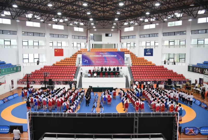 6月12日,2024年湖南省第二届校园摔跤柔道比赛在益阳师范高等专科学校益体馆开幕,赛事为期6天。来自全省的18支摔跤代表队、25支柔道代表队共700多人参赛。