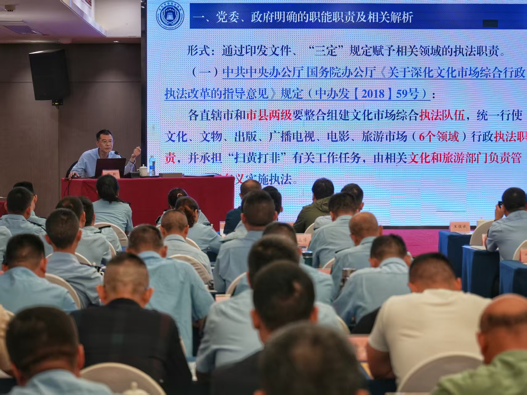 本次培训课程内容丰富、实用性强,涵盖了文化市场综合执法的多个关键领域。文化市场综合执法法定职责及相关政策解析让学员们对文化执法工作的政策依据有了更清晰的认识,规范涉企行政执法行为、优化法治化营商环境讲解,为学员们在执法实践中如何规范执法行为提供了具体指导,旅游市场执法实务及案例分析让学员们更直观地掌握执法要点,文化市场综合行政执法文书制作规范教学则有效提升了学员们的执法文书制作规范化水平。