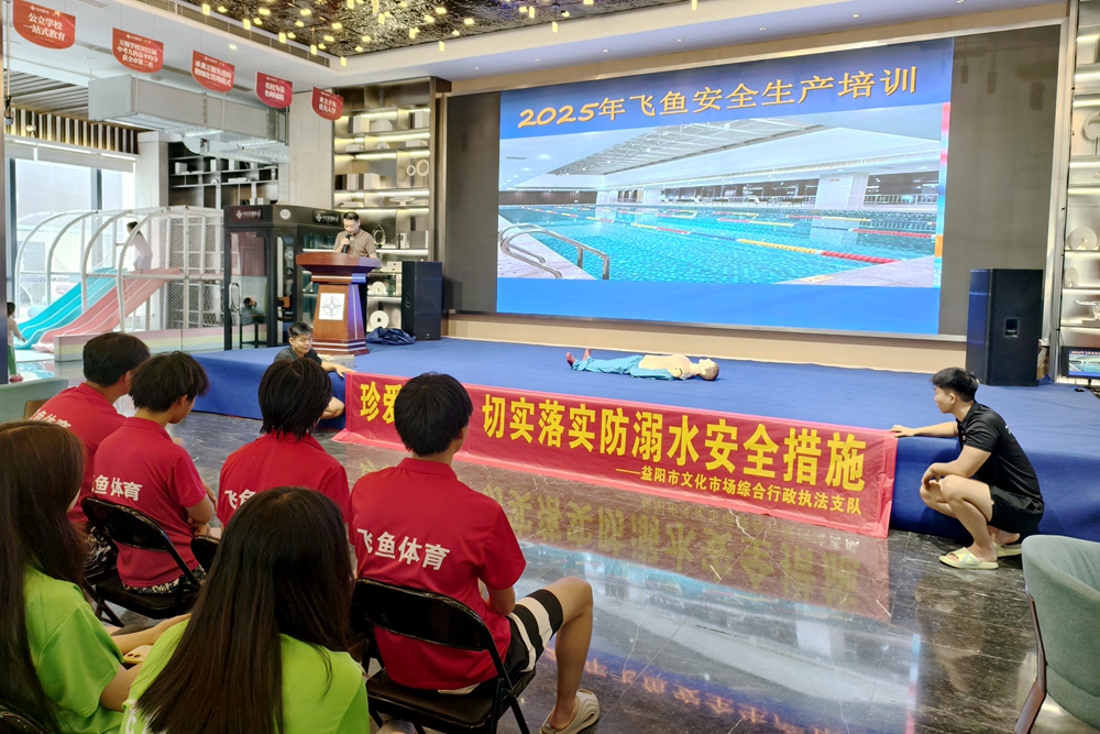 7月11日,益阳市文化市场综合行政执法支队组织中心城区各游泳馆负责人、救生员在中交世通新城召开游泳场馆安全生产培训会议暨暑期防溺水救生应急演练活动。