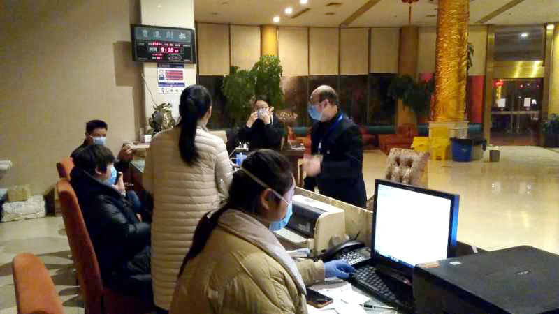 党员干部到各酒店进行疫情防控工作检查,要求经营单位积极开展健康教育宣传,做好入住人员身份信息登记,进行体温筛查,做好员工防护,加强酒店卫生整治,为群众提供安全放心的消费环境。充分发挥党员先锋作用,坚决打赢疫情防控阻击战。进行疫情防控工作检查,筑牢“防护网”。