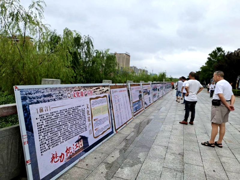 今年是我国第十五个文化和自然遗产日,主题是文物赋彩,全面小康。为促进尘封于馆藏文物库房中的文物精品,散布于桃江境内的文化遗存、民间技艺能够活起来,展现在人们的视线里,6月10日下午,桃江县文旅广体局精心组织,在县城风光带举行了宣传教育和图片展活动。