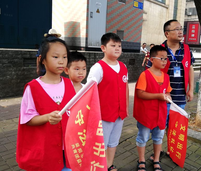 只见孩子们身穿志愿者衣服、手拿交通劝导小红旗,笔直地站立在人行道旁,不时举起手中的红色旗子提醒行人原地等候或引导行人有序过马路——“叔叔,现在是红灯,请不要过马路哦”“请您注意安全,绿灯不亮,不要过马路,谢谢”认真负责的模样吸引了众人,市民们向他们投来赞许的目光。孩子们利用暑假走上街头进行交通劝导,积极参与到我区新时代文明实践特色志愿服务中,为文明城市的建设增添一抹亮丽的色彩。
