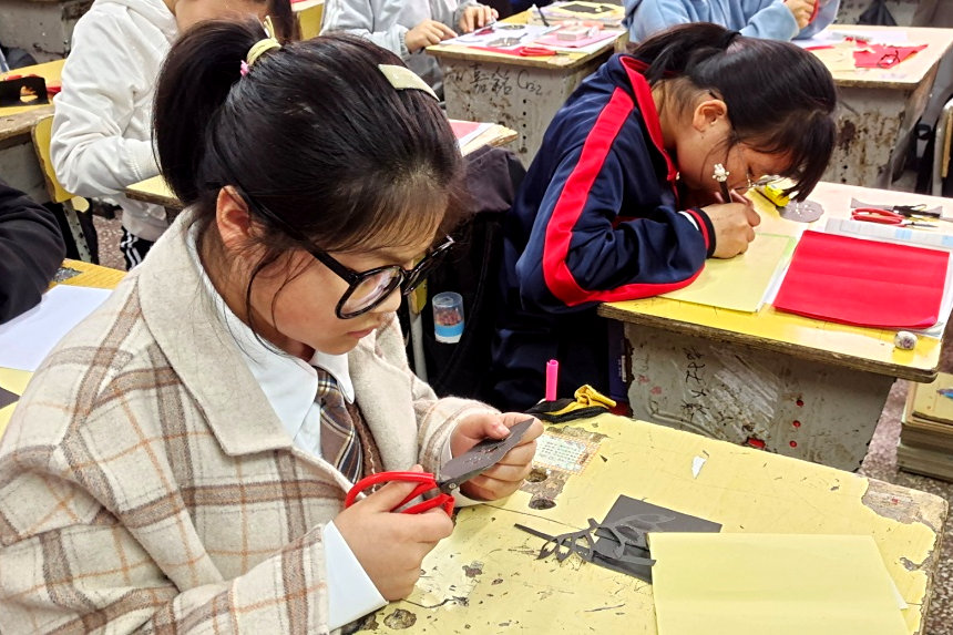 三官桥中学是桃江县授牌的首批市级非物质文化遗产“桃花江剪纸”项目的传承基地,近年来,在县文旅广体局的指导下,学校致力于将非遗保护与艺术教育相结合,将剪纸艺术带入学生们的学习、生活,大力传承和弘扬“桃花江剪纸”这一民间艺术,形成了“小剪纸、大课堂”的教育智慧,开辟了素质教育的新渠道,使学生们更加积极自信地传承弘扬优秀传统文化。