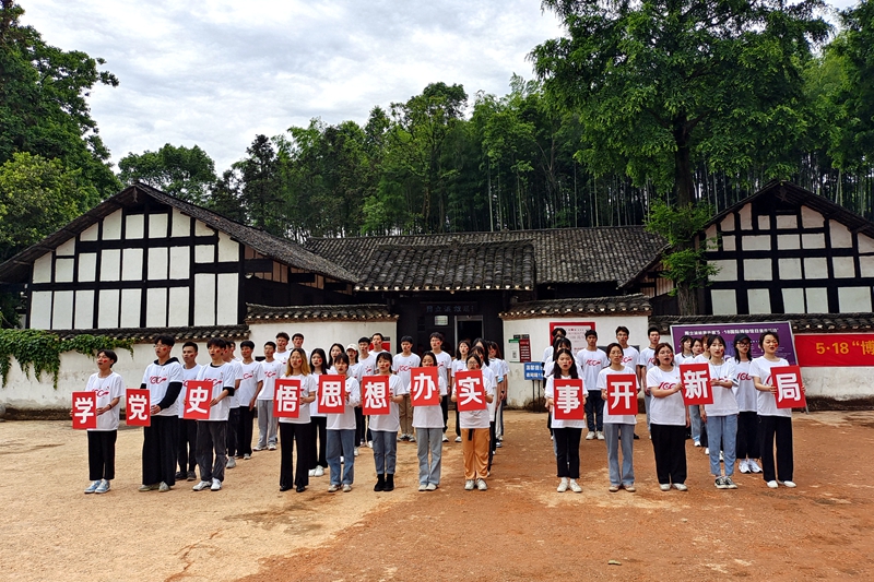挂牌仪式结束后,学院师生集体参观了周立波故居。通过观看图片、文献、实物等史料和聆听讲解员对周立波生平事迹的介绍,大家对周立波这位无产阶级忠诚战士有了更加直观和全面的认识,并引发了热烈的讨论。在红色精神的感召下,学生们在故居前列队,深情歌唱《没有共产党就没有新中国》。