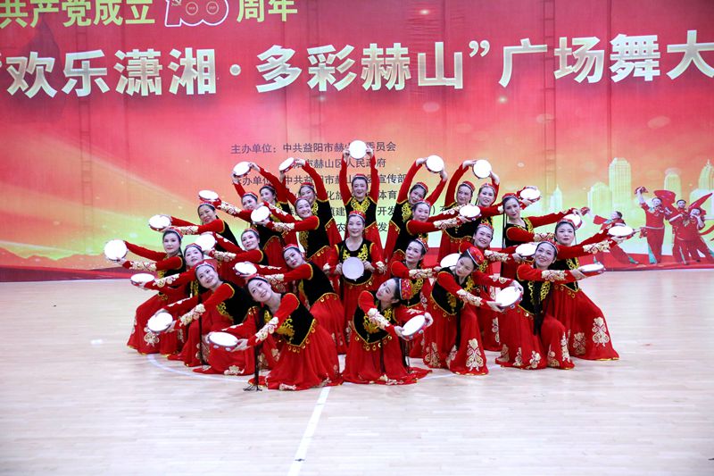 为庆祝中国共产党成立100周年,讴歌党的辉煌成就,6月16日下午,赫山区在区全民健身服务中心举办“欢乐潇湘 多彩赫山”广场舞大赛。本次活动由区委、区政府主办,区委宣传部、区文旅广体局承办,区城镇建设开发有限公司、益阳市嘉益农业科技发展有限公司协办。