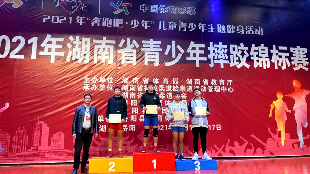 10月14日,2021年湖南省青少年摔跤锦标赛在岳阳县开赛,沅江市全民健身服务中心(业余体校)选派8名优秀青少年选手参加比赛,选手们厉兵秣马、紧张备战,围绕各项目冠军展开激烈的争夺,最终获得2金1银1铜的优异成绩,其中石泽胜获男子自由式U19岁组70kg级冠军,姚碧柔获女子自由式U16岁组63KG级冠军。