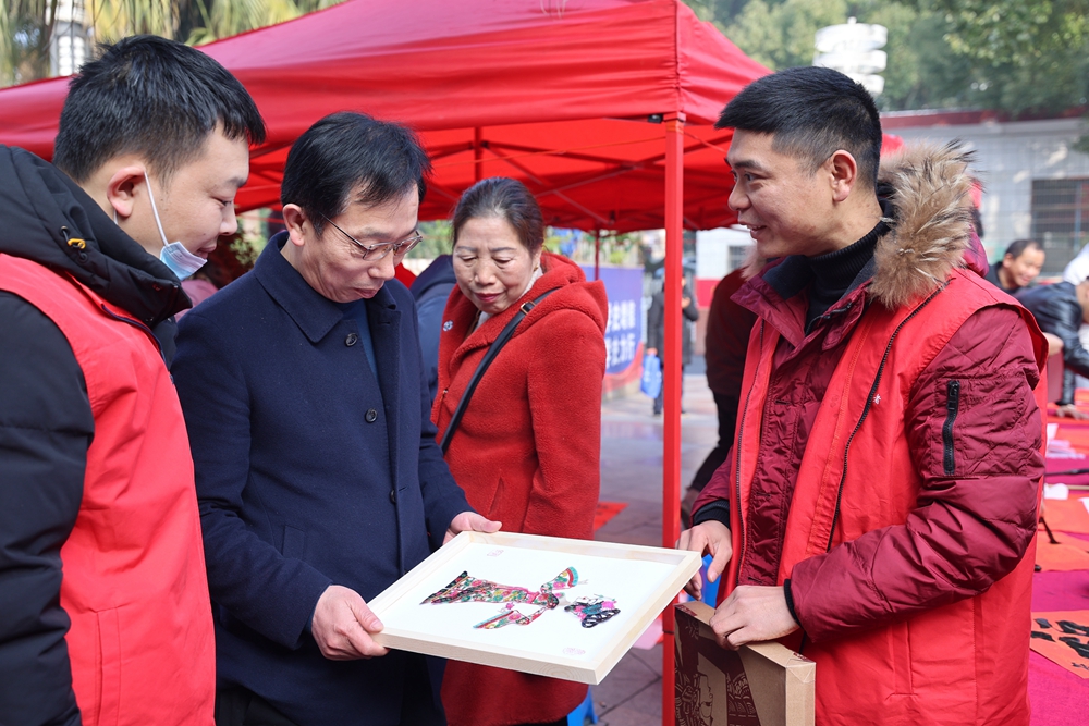 1月19日,赫山区文化馆在赫山步行街开展“非遗过大年 文化进万家”送剪纸活动,为来往游客送去新春的祝福。