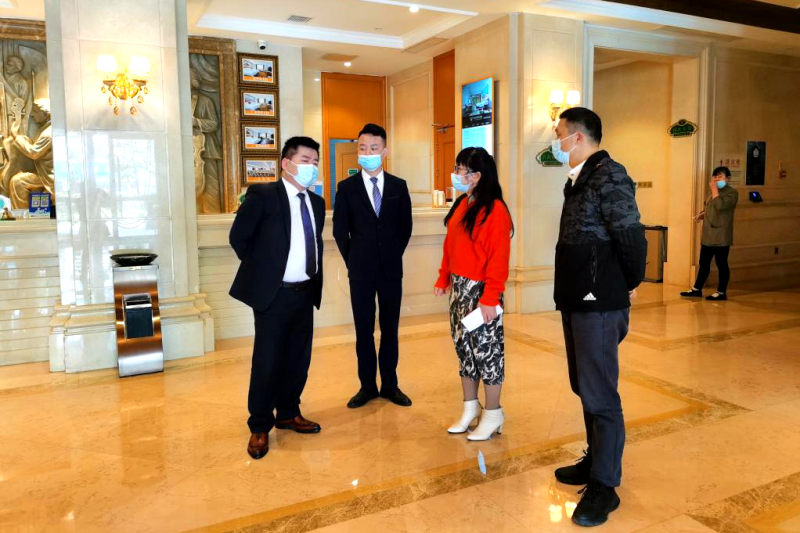 上午11时,督查组一行到达维也纳酒店,刚进门就被酒店的工作人员拦下来了,“这几位客人,请稍等,我来帮您量下体温;根据疫情防控的需要还请大家拿出手机扫一扫我们酒店的场所码,并请在我们的登记本上进行登记......”一连串的疫情防控规定动作训练有素、一气呵成,督察组一行连连称赞!