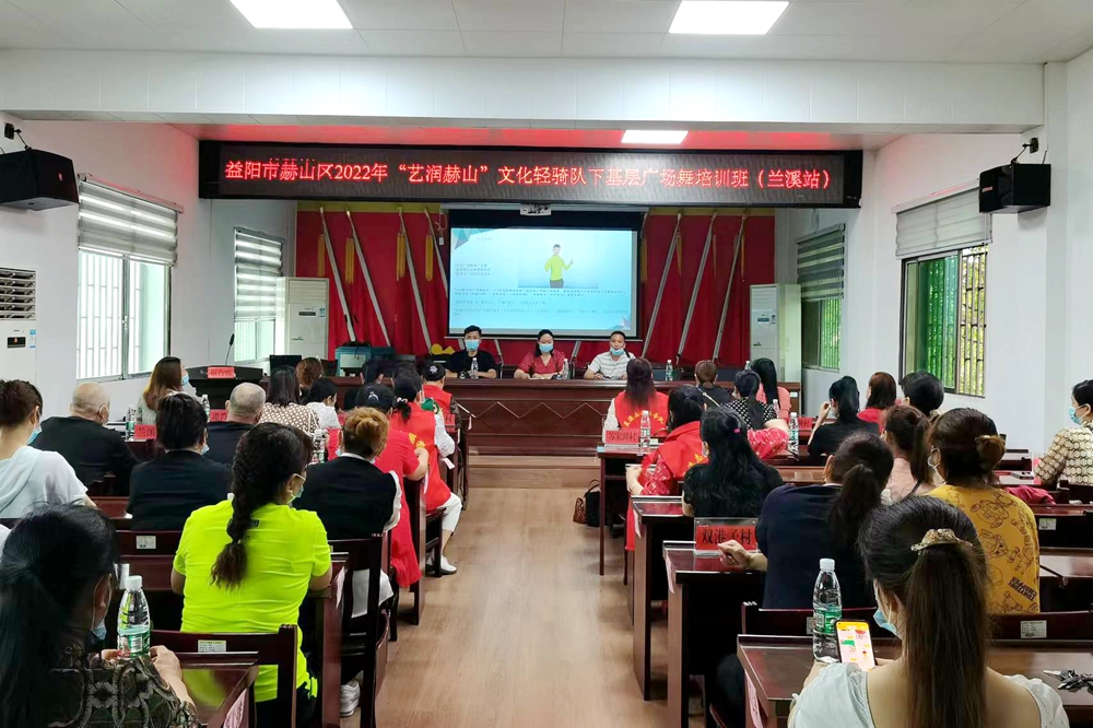 为丰富基层文化生活,提升人民群众的文化获得感、幸福感,5月7日,2022年赫山区“艺润赫山”文艺轻骑队赴兰溪镇开展广场舞专场培训,中国广场舞推广大使、国家级社会指导员、益阳市广场舞协会会长陈敏分理论知识和现场示教两部分进行授课。